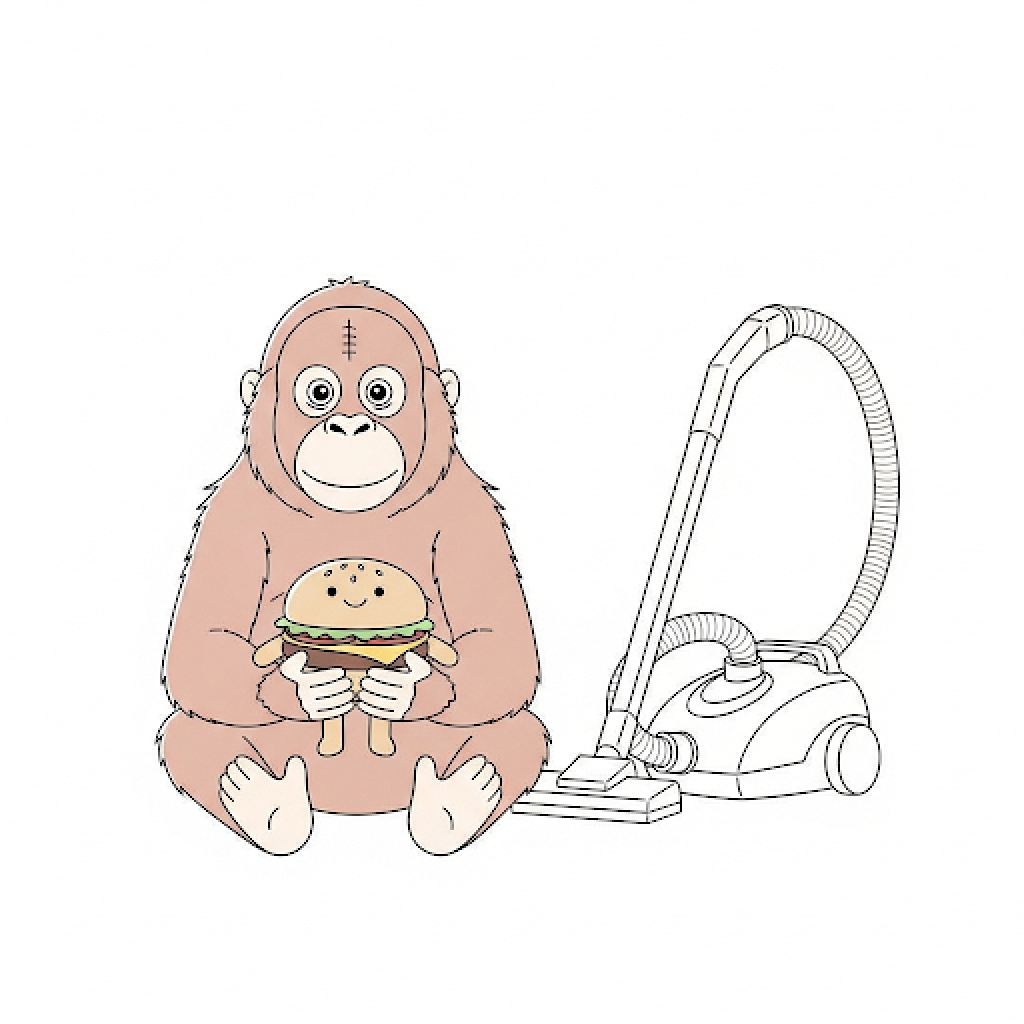 Ohne zu zögern, handelte Affi. Seine langen, kräftigen Orang-Utan-Arme waren nicht nur zum Kuscheln da. Mit einem schnellen Schwung packte er Carsten. Der Burger war zwar rund und ein bisschen schwer, aber Affi war stark. Er zog und zerrte, und mit letzter Kraft hievte er Carsten von der Decke, gerade als die große Bürste des Staubsaugers über die Stelle fegte, wo Carsten eben noch gelegen hatte.