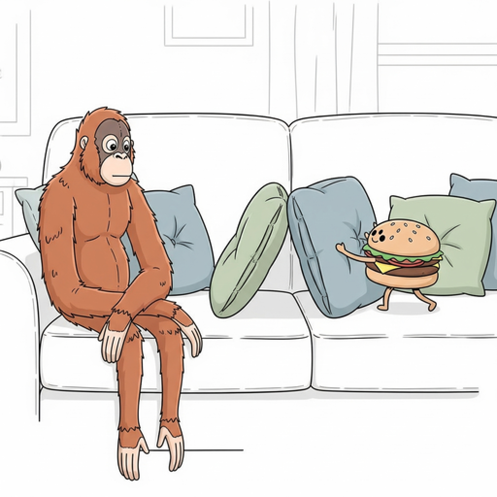 Affi nickte langsam, seine Stirn in Falten gelegt. Er hatte gehört, dass manche Tiere in Höhlen wohnten. Bären, Füchse… aber Burger? Er kannte nur sich selbst, den Orang-Utan, der am liebsten auf dem Sofa oder in den Armen seines Menschen saß.